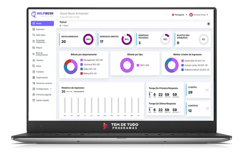 • Notificações por E-mail: Envie notificações automáticas por e-mail para clientes e agentes sobre atualizações de tickets.
