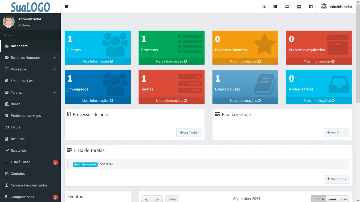 O Advsys é um sistema para site de advogados com painel administrativo para controle de processos e recursos internos do escritório. O cliente pode fazer login no site para verificar o andamento de seus processos.