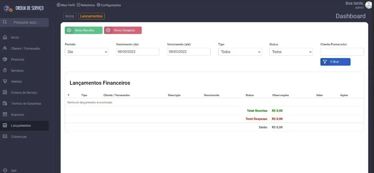 - 📈 Lançamentos com filtros (Receita / Despesa)